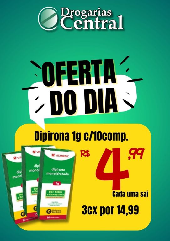 Venha para Drogaria Central! E não se esqueça, a Drogaria Central agora tem Quatro lojas, uma na Assis Ribeiro N.º 93, outra na Av: Presidente Dutra N.º 1000, outra na Av. Cardoso Moreira N.º 366 e a outra na Av. Cardoso Moreira N.º 572, antiga Drogaria Modelo.