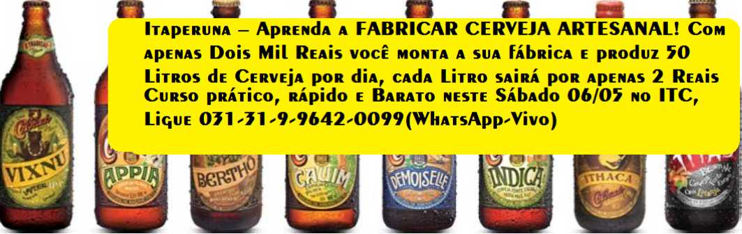 Itaperuna – Aprenda a FABRICAR CERVEJA ARTESANAL! Com apenas Dois Mil Reais você monta a sua fábrica e produz 50 Litros de Cerveja por dia, cada Litro sairá por apenas 2 Reais Veja mais informações abaixo: