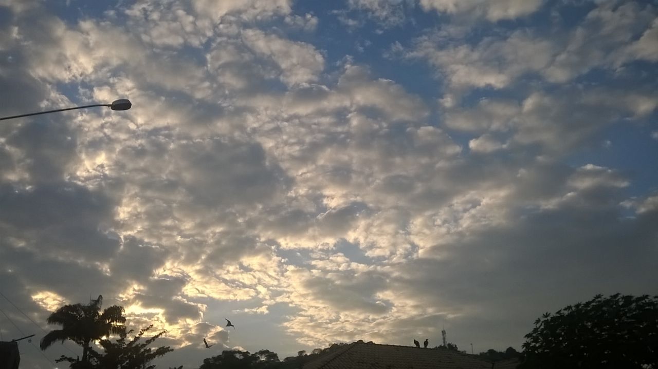 Sol com muitas nuvens durante o dia e períodos de céu nublado. Noite com muitas nuvens.