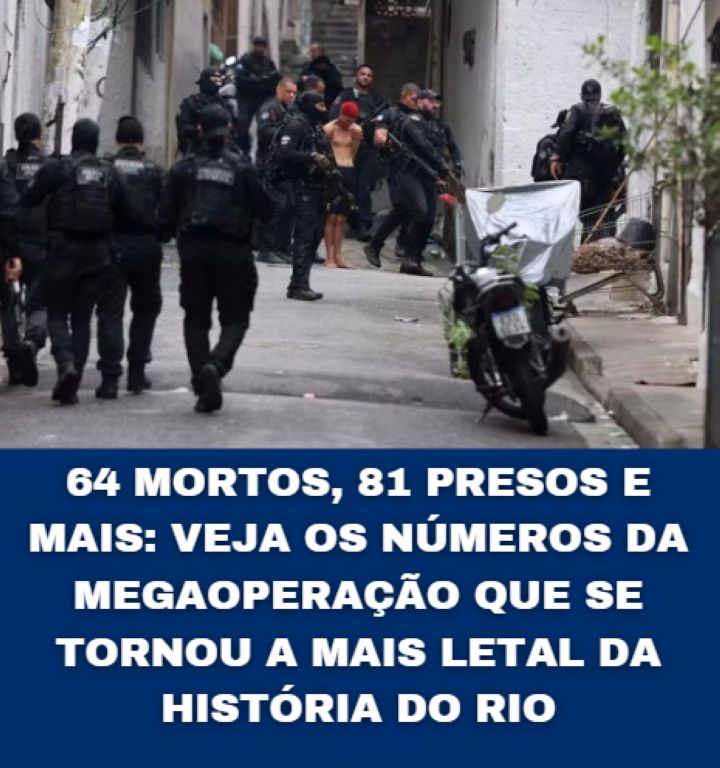 Terça-feira – 23:40 – 64 mortos, 81 presos e mais: veja os números da megaoperação que se tornou a mais letal da história do Rio. Veja Abaixo: